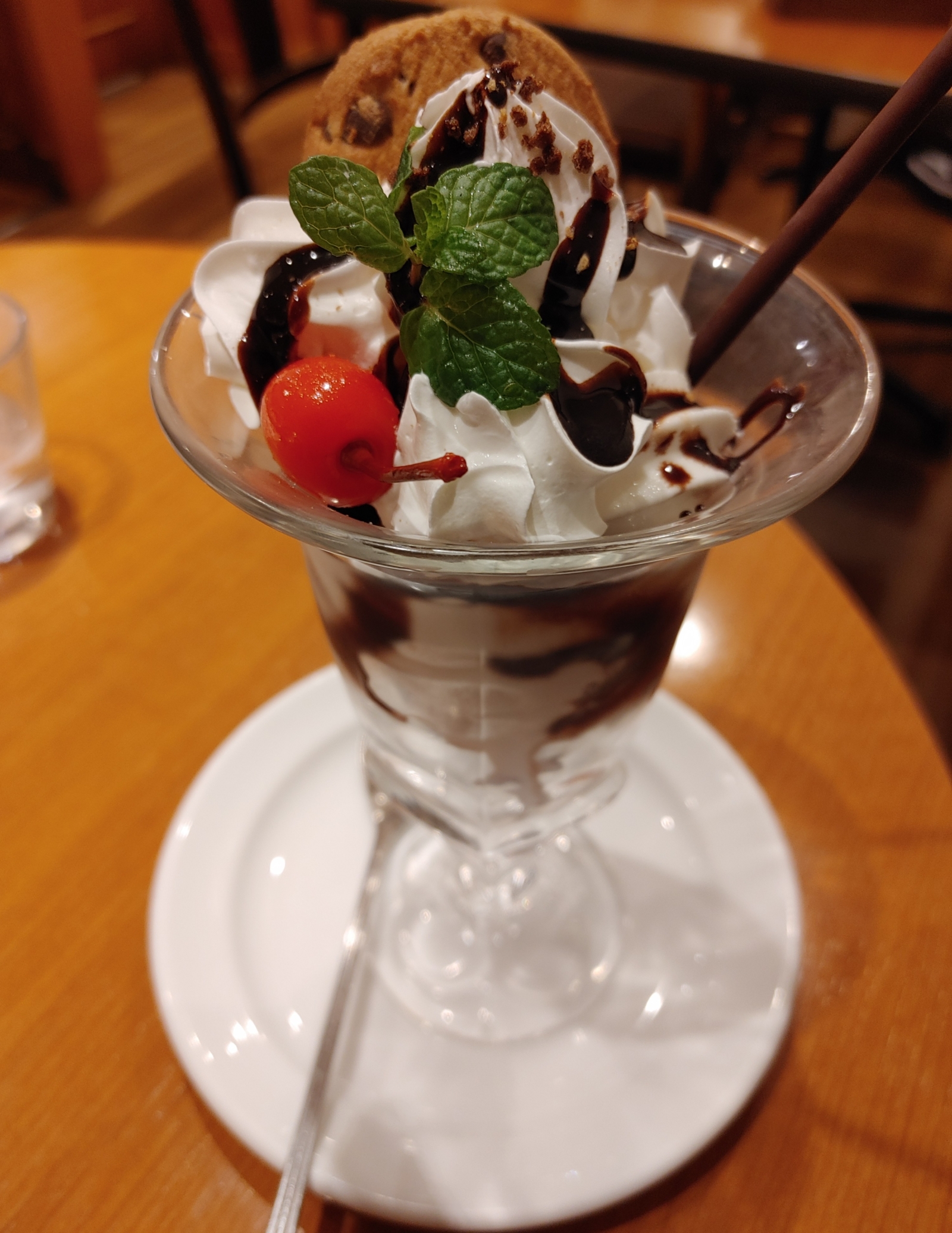 どうも❗ 本部の中川です😄 チョコレートパフェ食べてきました😆 今回はチョコチップクッキーが入ってま