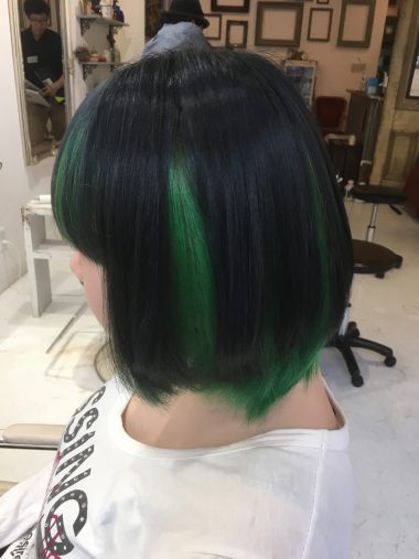 ビビットカラー✨? エストエスト ジリーノエスト キッケル 2018/05/10 こんにちは? エストの伊達です❗️? 今回は鮮やかビビット系カラー✨? ハチ周りを薄くブロッキングして、インナーを厚くとったスタイル??? 鮮やかですねー❗️?♂️ ブリーチ×2 からのグリーンをオンカラー? バッチリ入りましたね‼️⤴️ 気分転換には、インナーカラー✨✨ オススメです‼️ 興味のある方は是非エストまで???