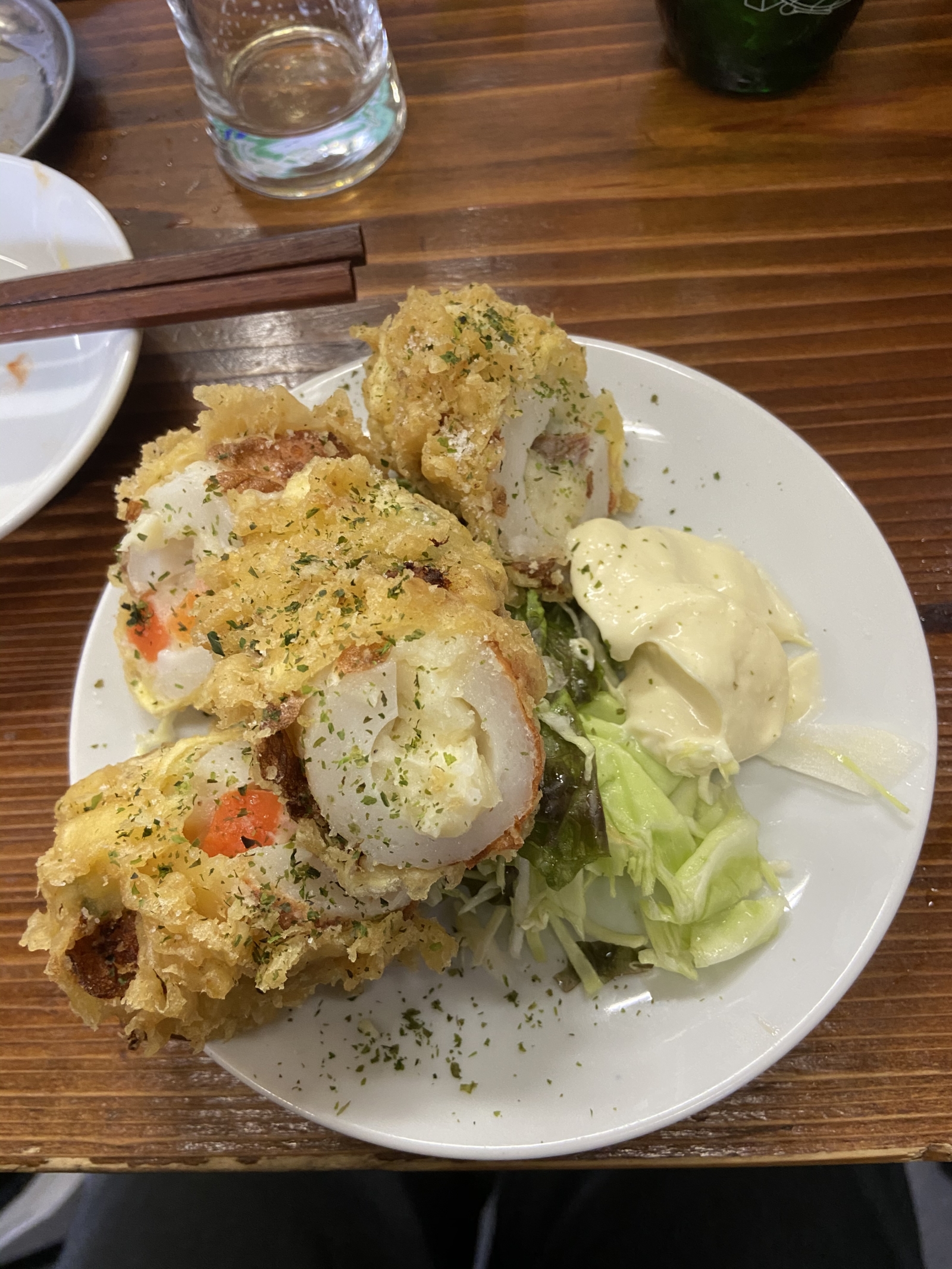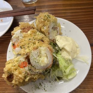 チクワの中にポテトサラダが入っている天ぷらです🍤🍤