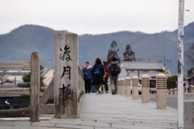 渡月橋を渡ります