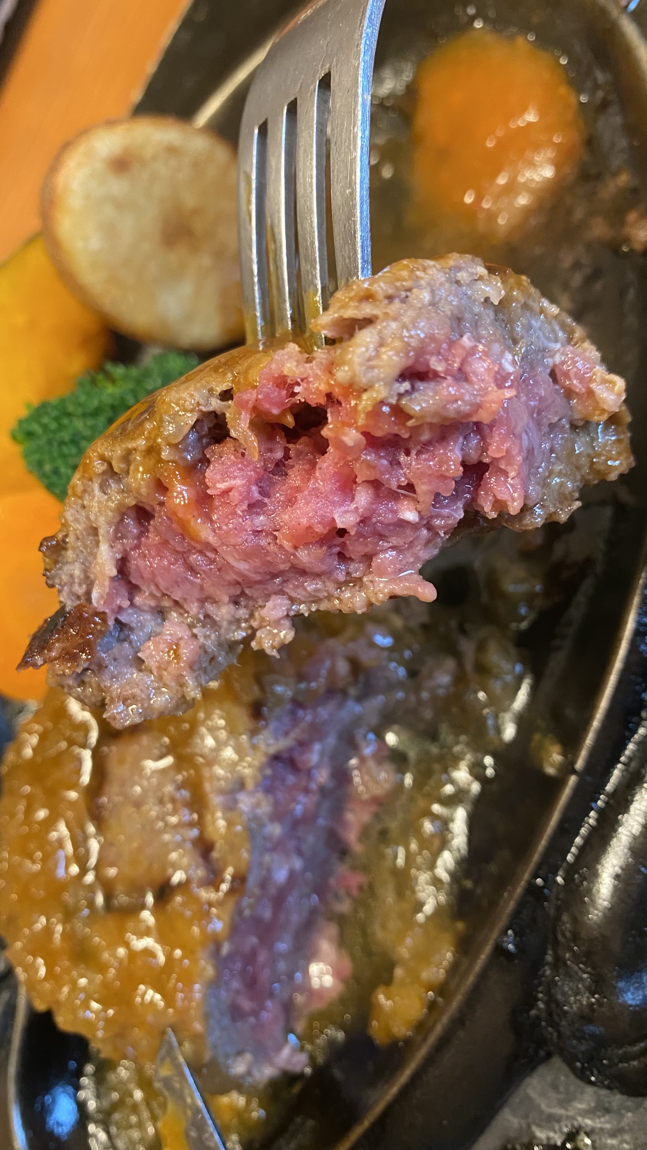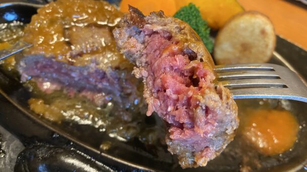 ビーフ100%、つなぎの無い肉の塊のハンバーグステーキは逸品です^^
