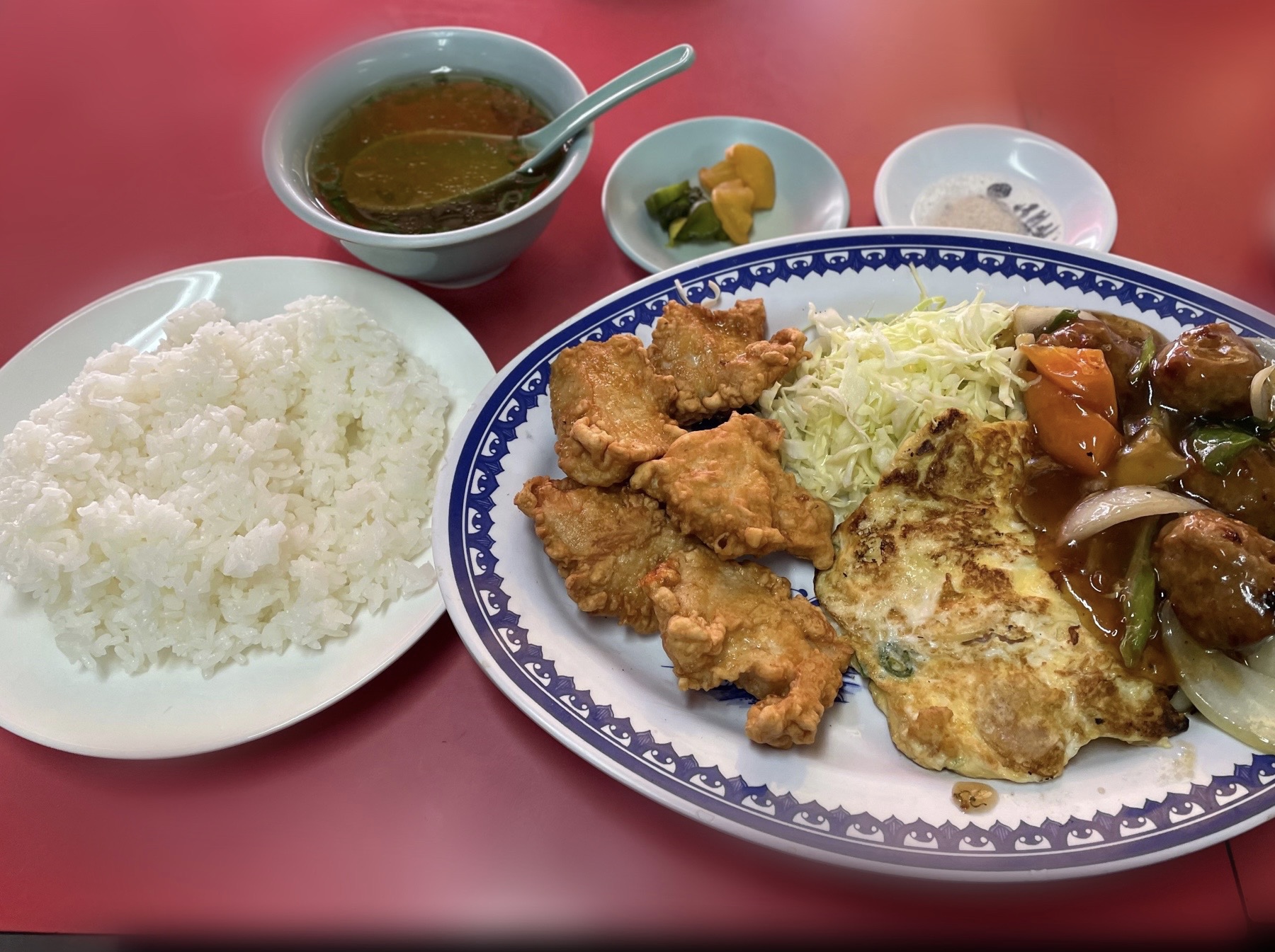 プレートの左から、唐揚げ5個、エビ玉、肉団子🧆と全て美味しくて、ボリューム感あり最高でした👍