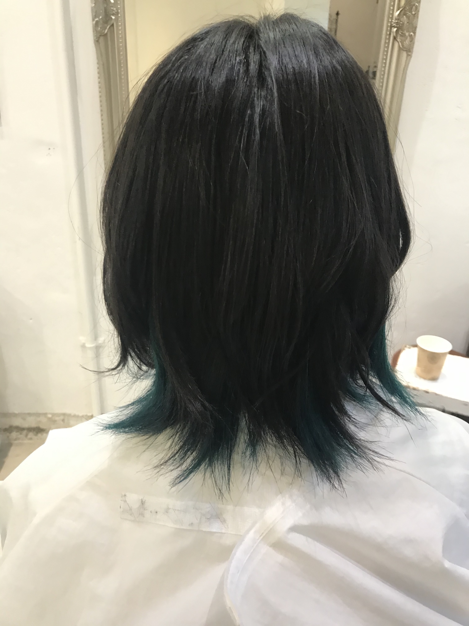 💙インナーカラー💚 エストエスト ジリーノエスト キッケル 2020/10/27 どーも〜ツナですϵ( 'Θ' )϶ ブリーチ2回からのカラーバターで、ブルーグリーンで染めました🤗 色抜けも淡くなって楽しみですね!大体ブルー系は色抜けしてくると緑よりになりますが、とてもキレイです꒰ ´͈ω`͈꒱💕 もうすぐハロウィンですね🎃 エストは今年もスカルメイクで営業します💄💀 差し入れ頂きました! ありがとうございます!美味しかったです〜😭❤️
