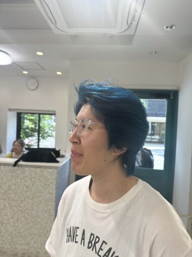 NEWカラー💪 エストエスト ジリーノエスト キッケル 2024/06/26 エストのおーぼです☺️ 梅雨の時期になりましたね☔️ 梅雨の時期と言えばアジサイ そして、私自身アジサイカラーにしました😁 昭和の近藤真彦さん風にセット笑 正面から見るとこんな感じです😏 一応2色を入れてます✌🏻 抜けてきても絶対綺麗なので、この抜け具合も楽しんで行こうとおもいます😸 それにしても、Tシャツが気になる。。。笑 是非このアジサイカラーを見に来てください😁 おしまい。。