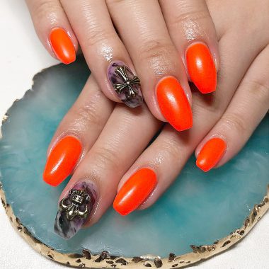 もう夏が来るということで、どうしてもオレンジ色?のネイルにしたくてしてきました!!