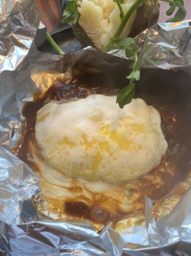 アルミホイルで包まれたハンバーグが名物のお店で、前菜で出てくる丸ごとトマトサラダがすっごく美味しいんです🍅