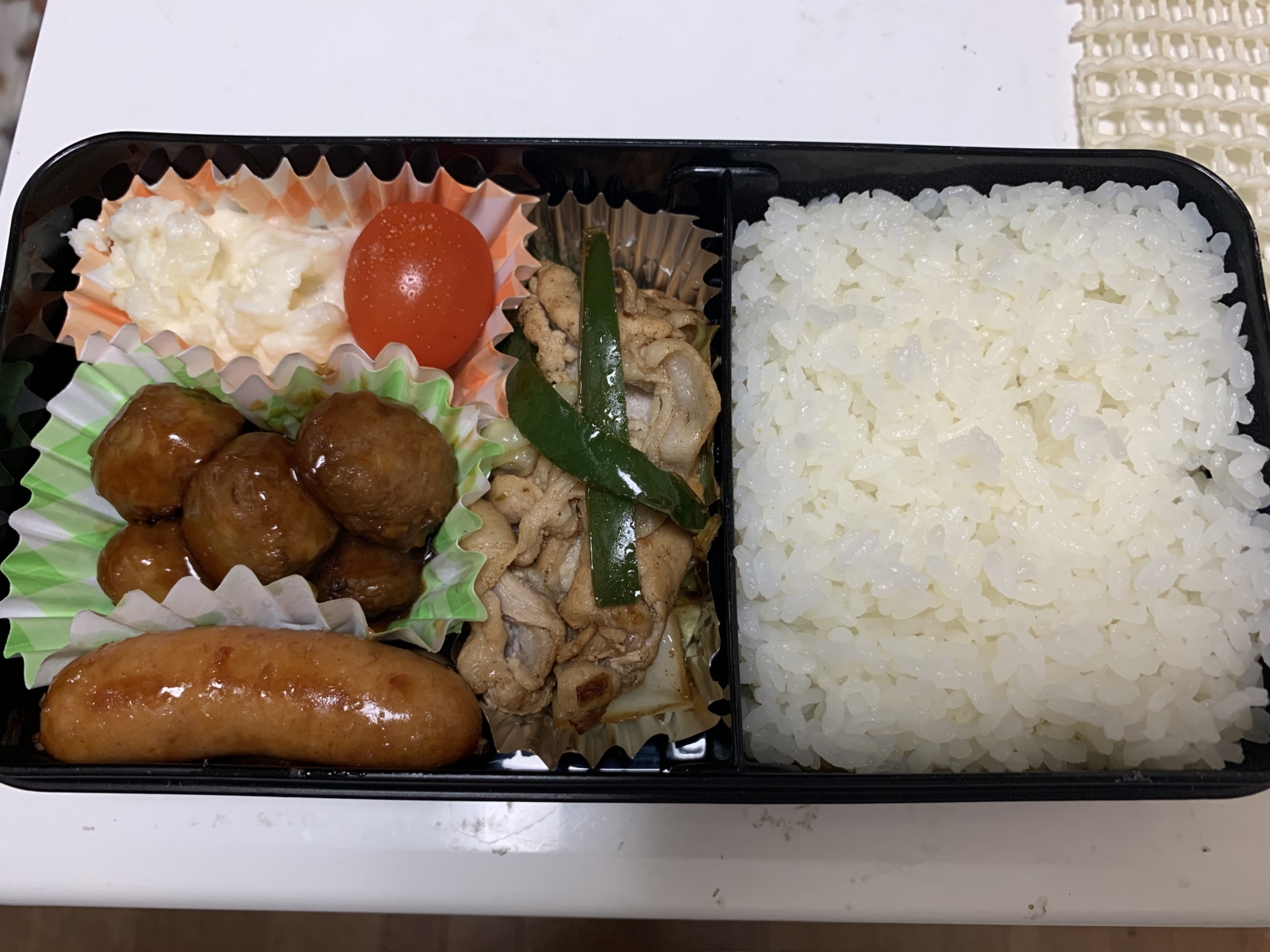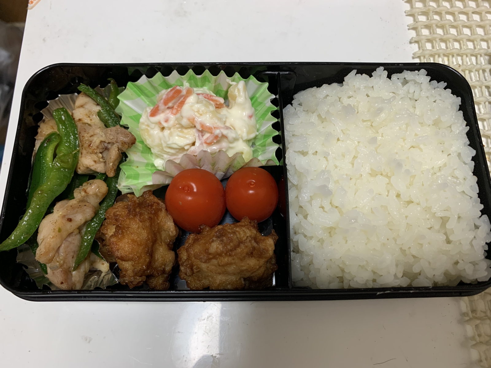 お弁当🍱 エスティープロ 2020/06/17 こんにちは🙋♀️ 中崎です😊 最近、頑張ってお弁当を作っているのですが 栄養や彩りをバランス良く作るのが難しくて😭 小さい箱に色んな物を入れるのは至難の技ですね!!!! (これは私のお弁当じゃないです) トマト入れたらいいわと思ってるところもありますね🍅笑 毎日頑張ってるお母さん達は凄いと思います😌 ストレスにならないように 程よく頑張ります🙋♀️✨ 半年以上前のふざけた写真です🤣