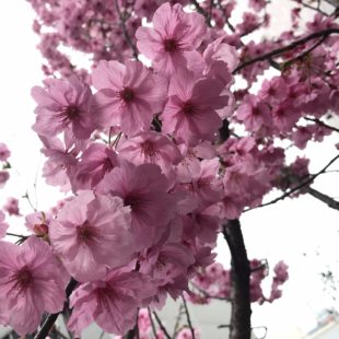 それまでに、私も桜を探そうと思い、街をプラプラしていたのですが、一輪咲きばかりでないなーと思っていたら、なんと家の駐輪場の横に満開に咲いてました🙋