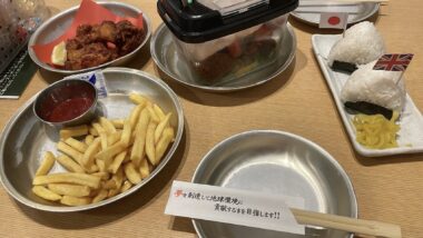 私たちは保健室の部屋でご飯を食べました🍙