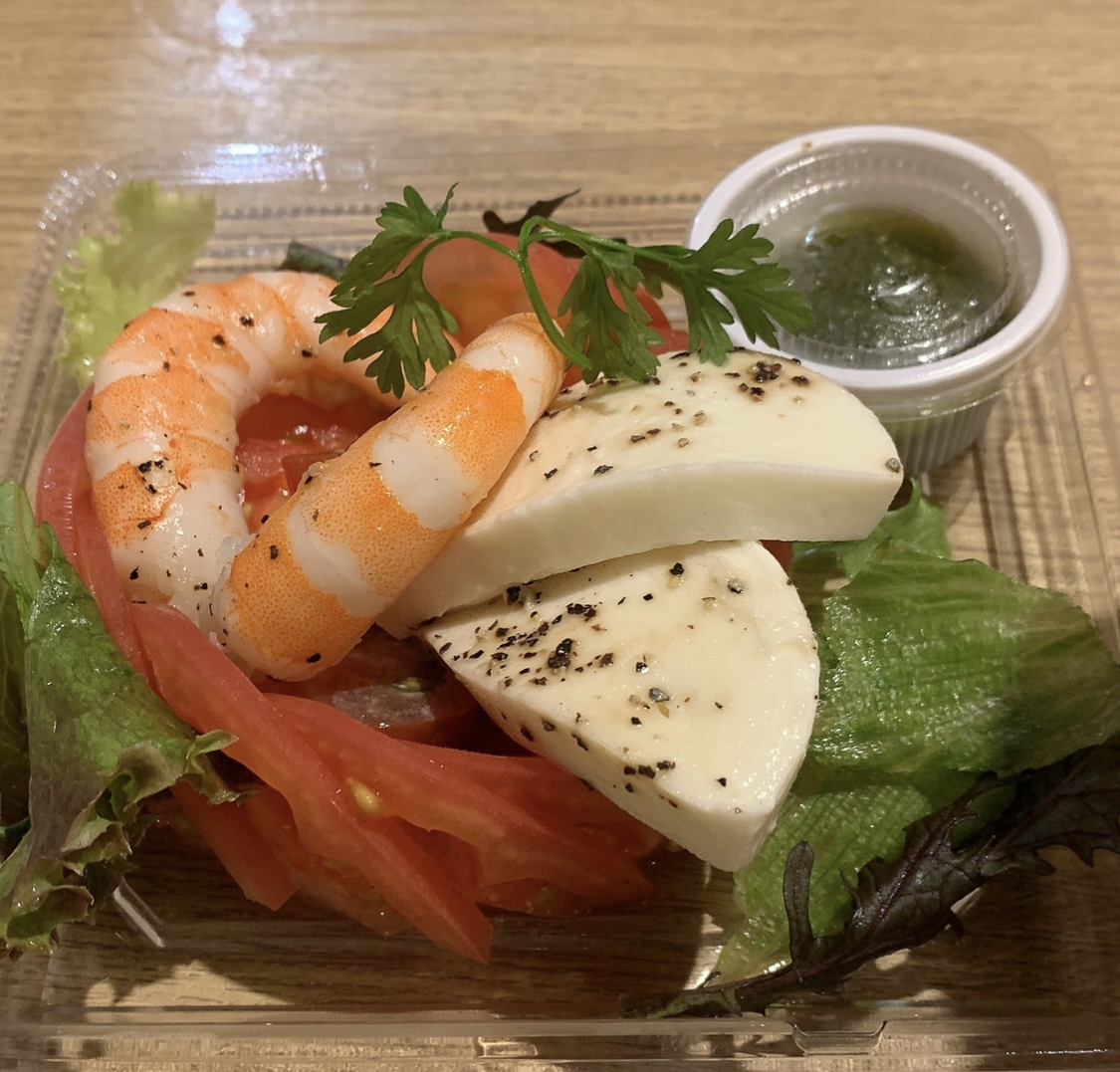 チーズ🧀とエビのカプレーゼ🦐もこの間食べたのでお見せします(^ν^)