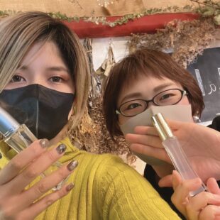 お久しぶりと初めまして😃✨ エスティー高槻店 2022/03/05 こんにちは😊 今月から天王寺店から高槻店へ異動になった森山です🌈 初めましての人もお久しぶりの人もいますね😃 よろしくお願いします😊 アロマにはアロマテラピーという効果があります🤩 眠れなかったり気分の落ち込み、月経前症候群(PMS)など、自律神経系の症状に効果があると人気です🌹 良かったら自分好みのアロマに包まれてみて下さいね😌 お楽しみ会で作った香水です✨ 自分好みに調整するのは面白かったです♪