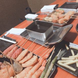 月イチの飲み会🍻 エスティー高槻店 2019/02/25 こんにちは😃 森山です❗️ 本日、エスティー高槻店のメンバーで通天閣近くの串カツ屋さんで、月イチのお楽しみ会🍻をしました😊 串カツを色々食べましたが、その中でサツマイモのいい所をご紹介します🐽 サツマイモは鮮やかな色を作っているのはベータカロテンで、これが体内でビタミンAに変換されるそうです🍠 皮下組織に蓄積されることによって、お肌の重要な構造を局所的に守るはたらきをします✨ お肌のケアで内側からも守れるんですね〜😚 食材を選ぶ時の参考にしてみて下さいね💖